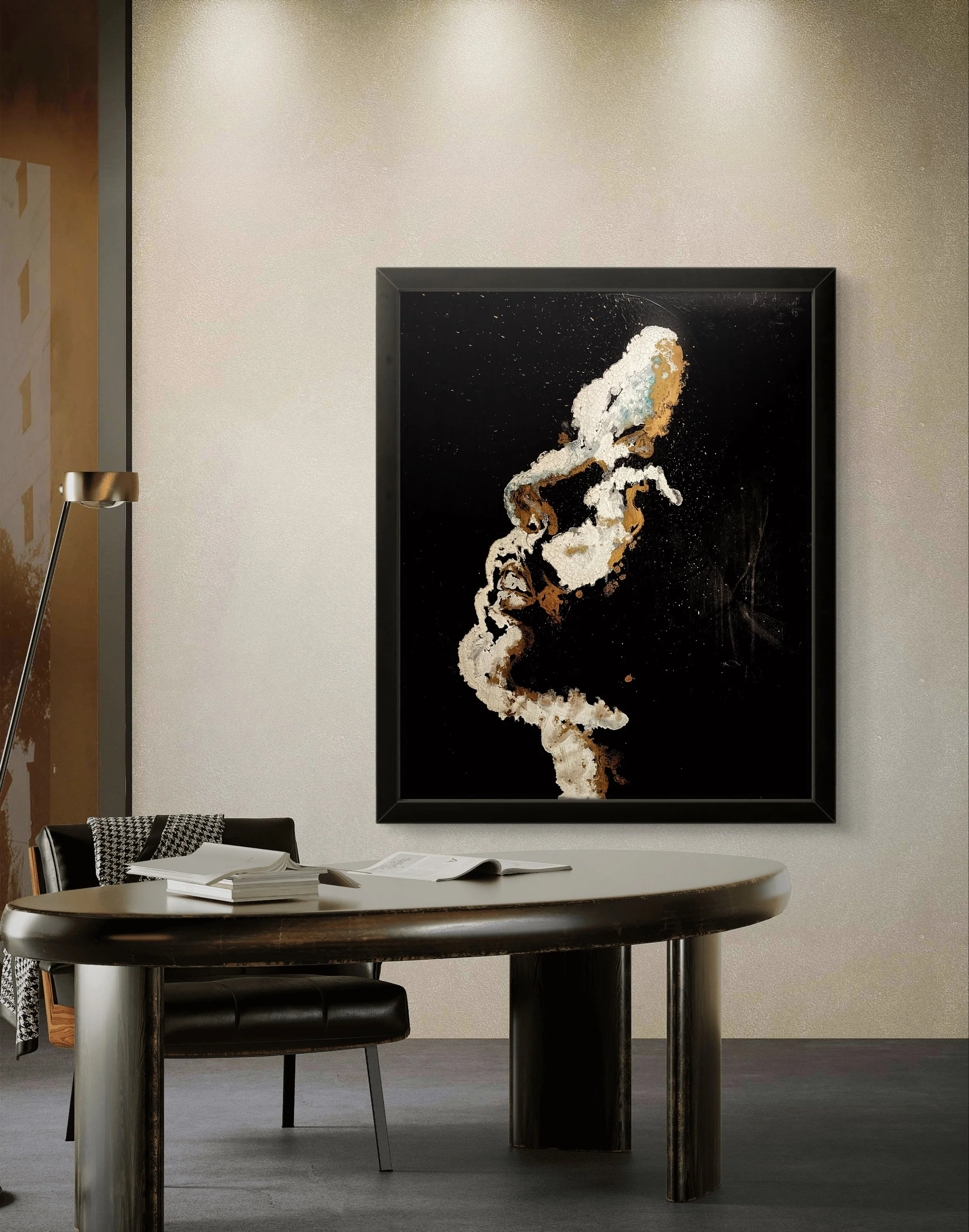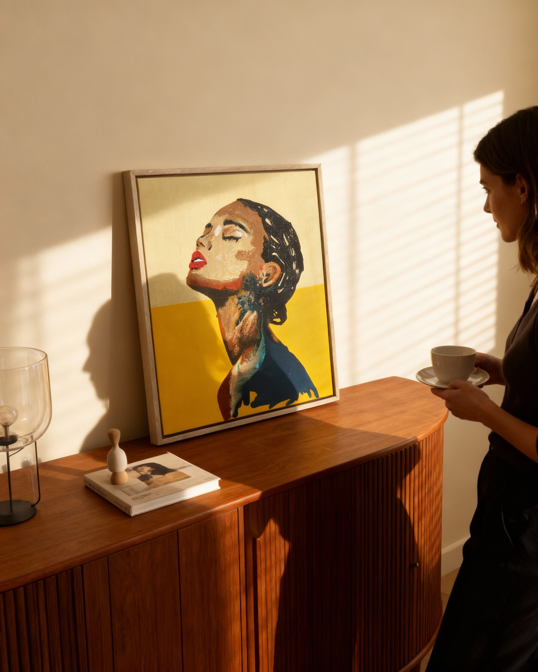 “I fell in love with her art at first sight. The colors, the textures, and the gold leaf details bring a unique light to my home. It feels like a part of me.”