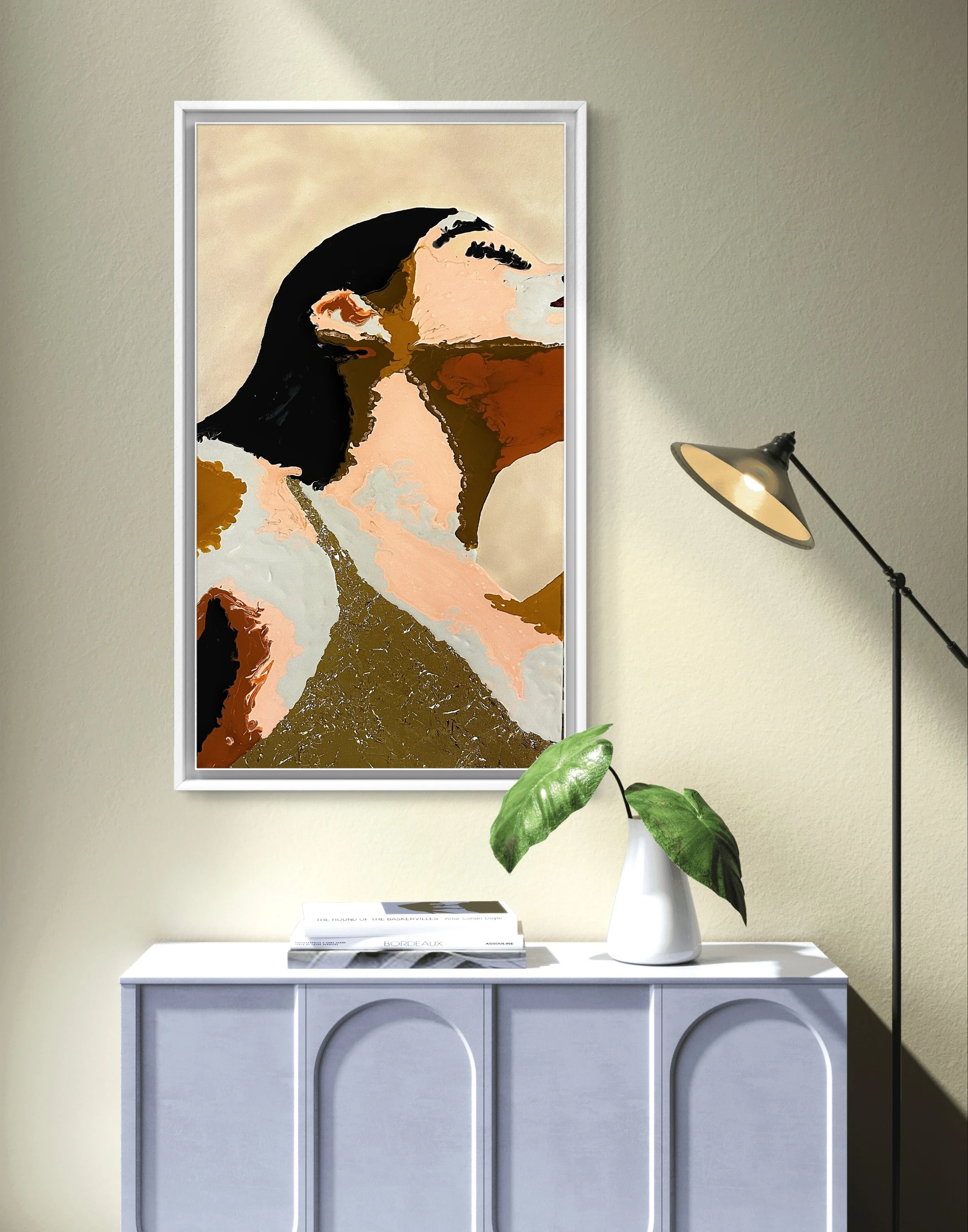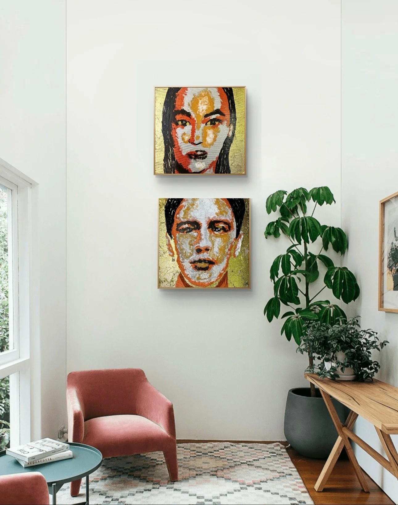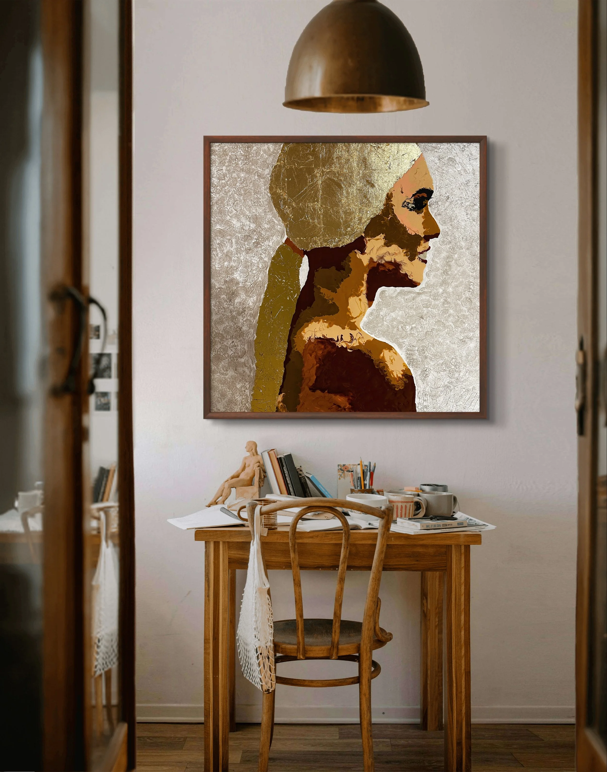 In this series, I portray women from diverse ethnicities and backgrounds, each carrying her own story, essence, and identity. Through vibrant colors, I capture the intensity of emotions and the richness of each cultural heritage, while gold leaf becomes a symbol of inner light, resilience, and the ancestral connection that transcends time.